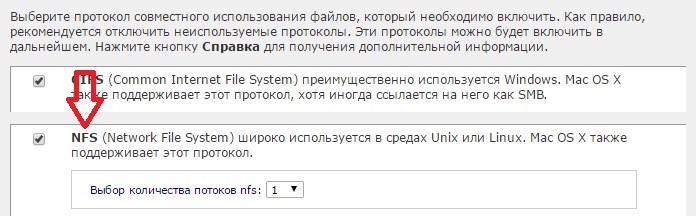 1. Первым делом необходимо сконфигурировать само NAS хранилище. Обязательно нужно проверить, чтобы везде был активирован протокол NFS, а также выставить полные права для всех пользователей и отключить авторизацию.