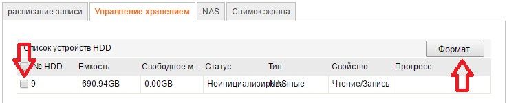 4. Әрі қарай, "Сақтауды басқару" қойындысына өтіп, қызығушылық танытқан HDD-ге қарама-қарсы құсбелгіні қойып, "Пішім" түймесін басыңыз.